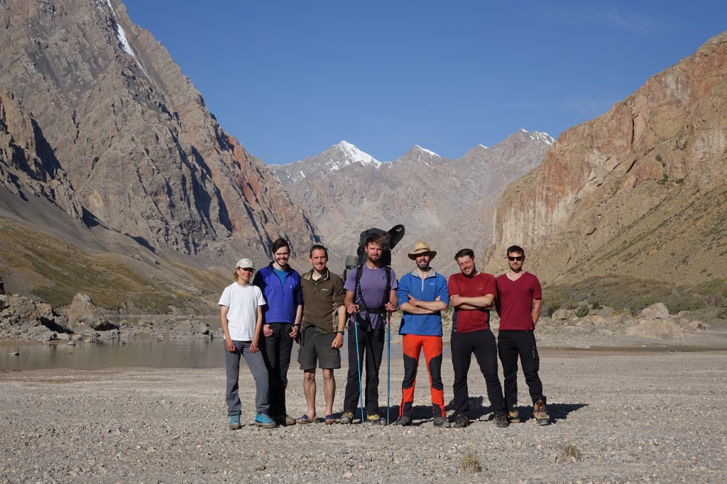 The remaining days in the mountains flew by. A few more summits were conquered before the end, taking our expedition total to fourteen recorded ascents. Hopefully they would prove to be most, if not all, first ascents. Confirmation of this would have to wait until the months after the expedition (as I write this we still await some degree of official confirmation) but that was not our concern in the last few days. These were spent finishing the last few routes on the camp climbing wall (6 new routes with a topo, Chossfax© Kyrgyzstan Edition to follow) and enjoying the last of our incredible camp. Before we knew it, we were packing the base camp and loading the pack horses to return to civilisation. The walk out of our gorge was bittersweet but the sun shone on our departure. We took one last group photo overlooking the lake and made our way out of the Borkoldoy and started for home.