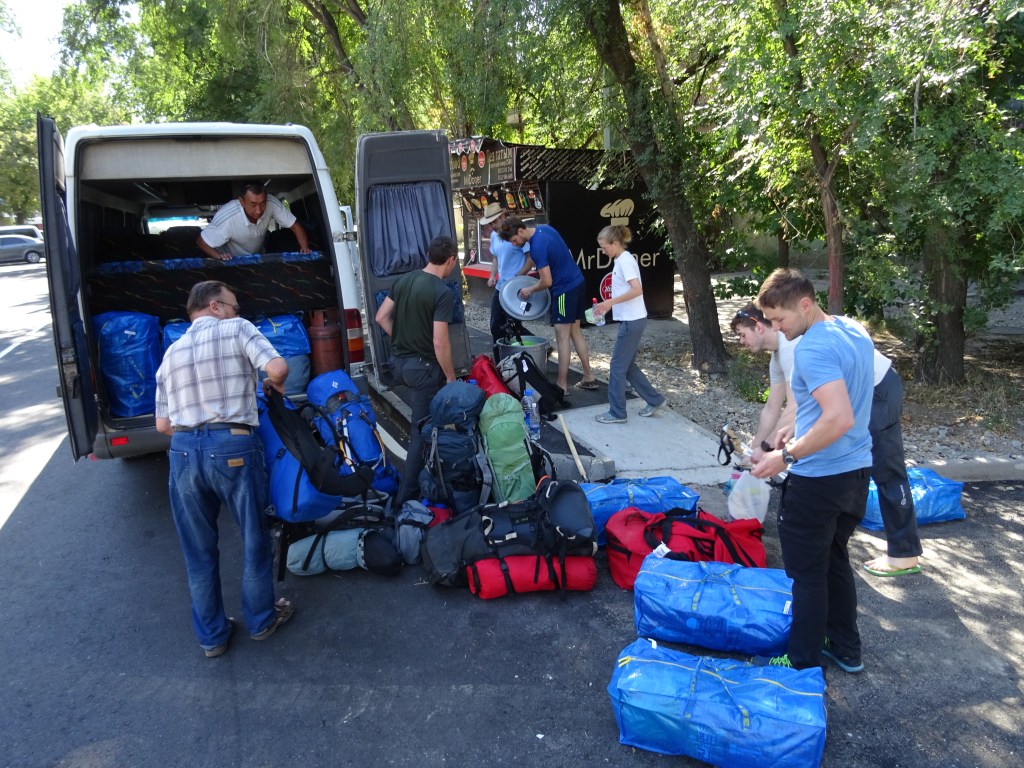 Seven made up the expedition flying out from Heathrow, drawn from all over the UK but all heading for Kyrgyzstan. Neil, the Exped leader and itinerant actuary; Matt, the token Peak District grit addict; Stuart, our mountain rescue (and peanut butter) guru; Tom, resident cartographer and camp chimney; Hannah, the Exped scientist and nature buff; David, our doctor, lifeline and drug dealer; and, finally, me, the token Scot (except I wasn’t, as so was Stuart) and head chef. Our target; the Borkoldoy Range in the Tien-Shan, where we had identified an area with numerous unclimbed mountains up to and above 5000m. There had been previous expeditions into the region which had enjoyed varied degrees of success (and in the case of one expedition, success had resulted in some rather dubious mountain naming, but to the victor the spoils). Tom, our cartographer, concluded after painstaking research that the mountains surrounding our base camp looked big, accessible and, most vitally, unclimbed. So, with heavy kit bags and an almost unhealthy level of enthusiasm we set out from the capital, Bishkek. Over half a tonne of personal kit, technical group kit, food, supplies and tents were loaded into our vehicles, initially a simple van but latterly a 10-tonne behemoth of Russian construction, all re-enforced steel suspension and ridiculously thick rubber tyres, that would drive on happily hours after leaving the roads far behind. All this, along with some packhorse manoeuvres in the dark, found us at the site for our base camp, and oh what a sight it was. A long glacial ribbon lake, powder blue and constantly fed by meltwater, bordered by sudden and boulder-strewn slopes that arched ever more steeply upward to castles of rock and ice. Valleys, unexplored and largely un-gazed upon by human eye, branched off on either side of the main gorge, climbing into high and hidden recesses that we would spend the next three weeks uncovering. None of us could wait.