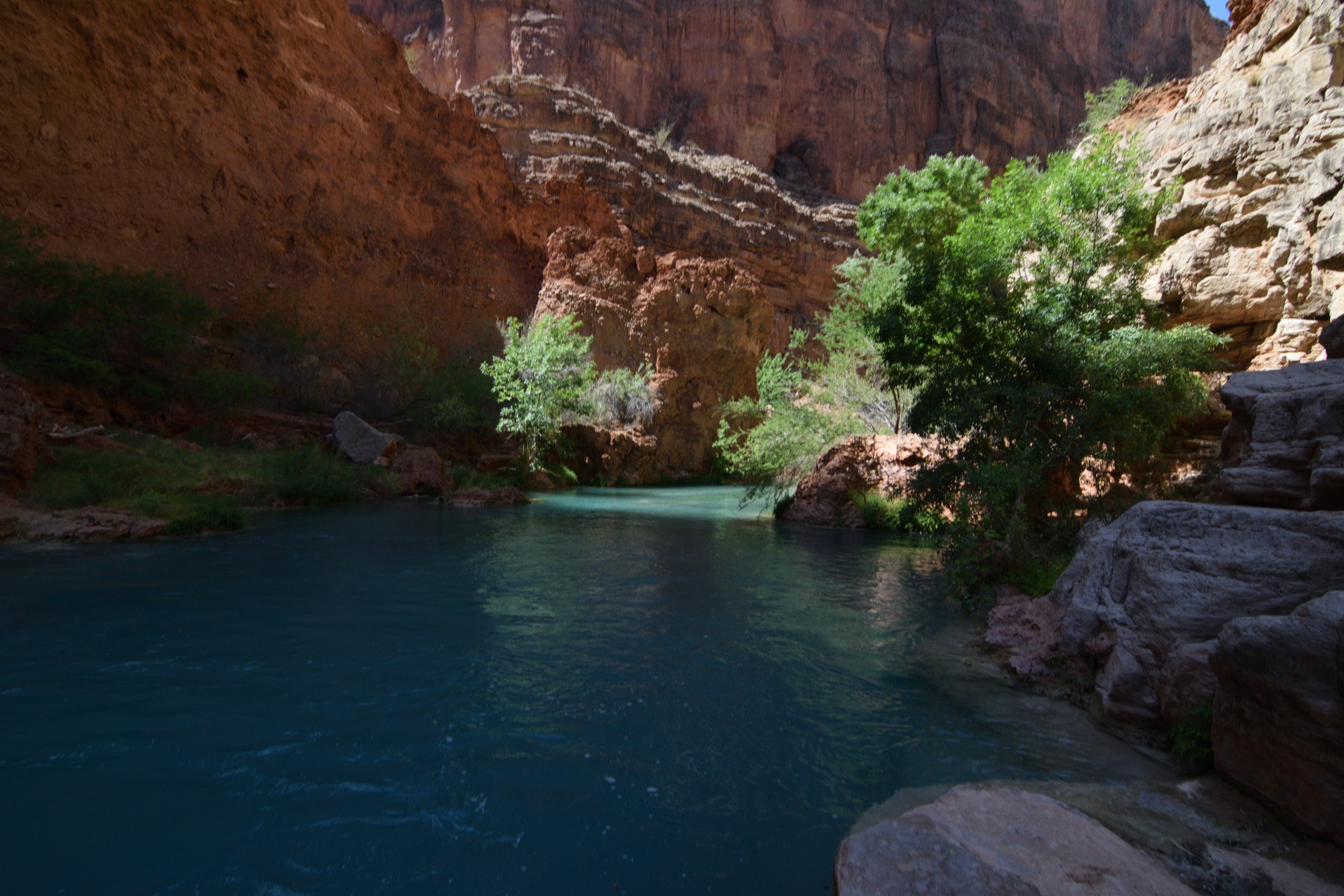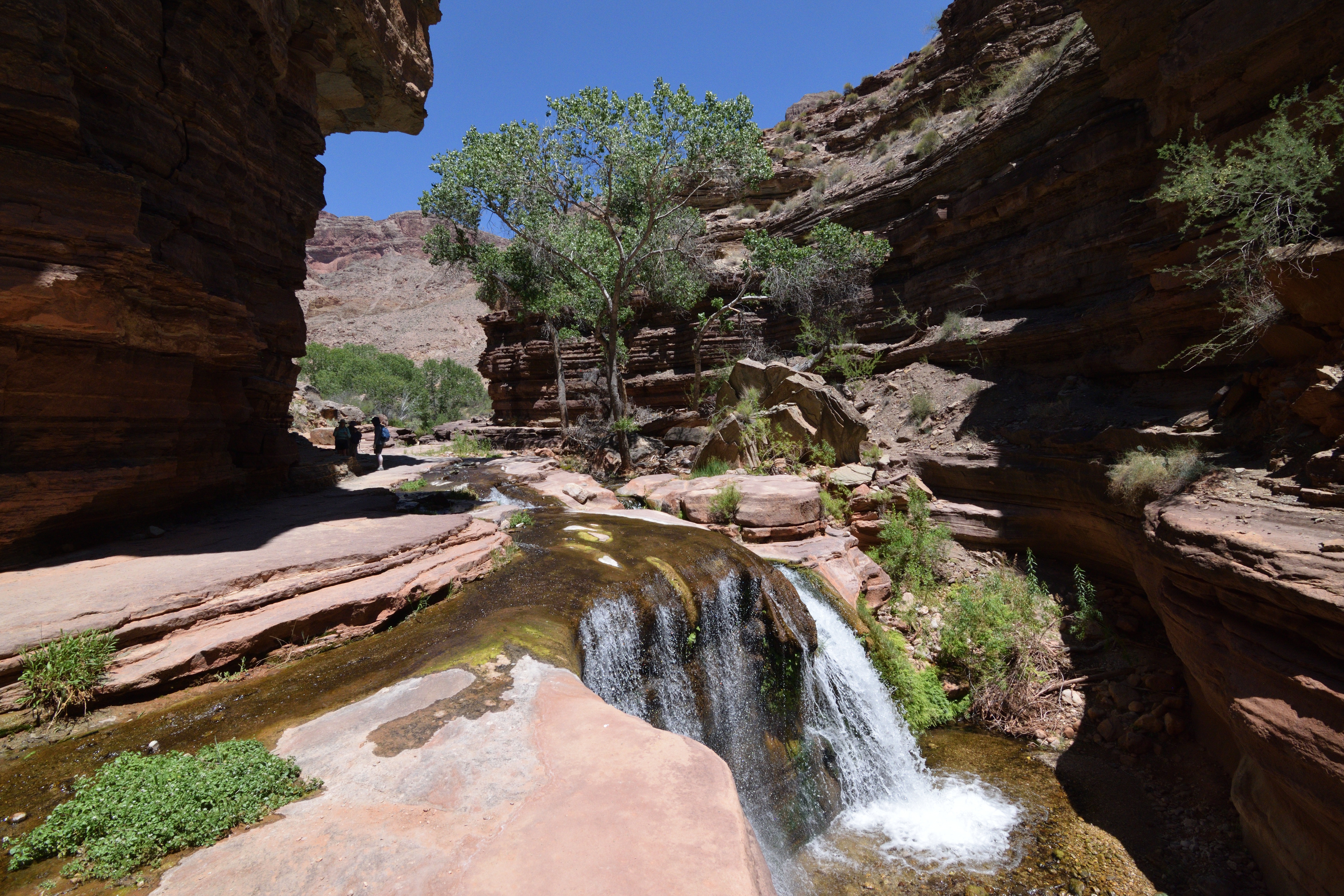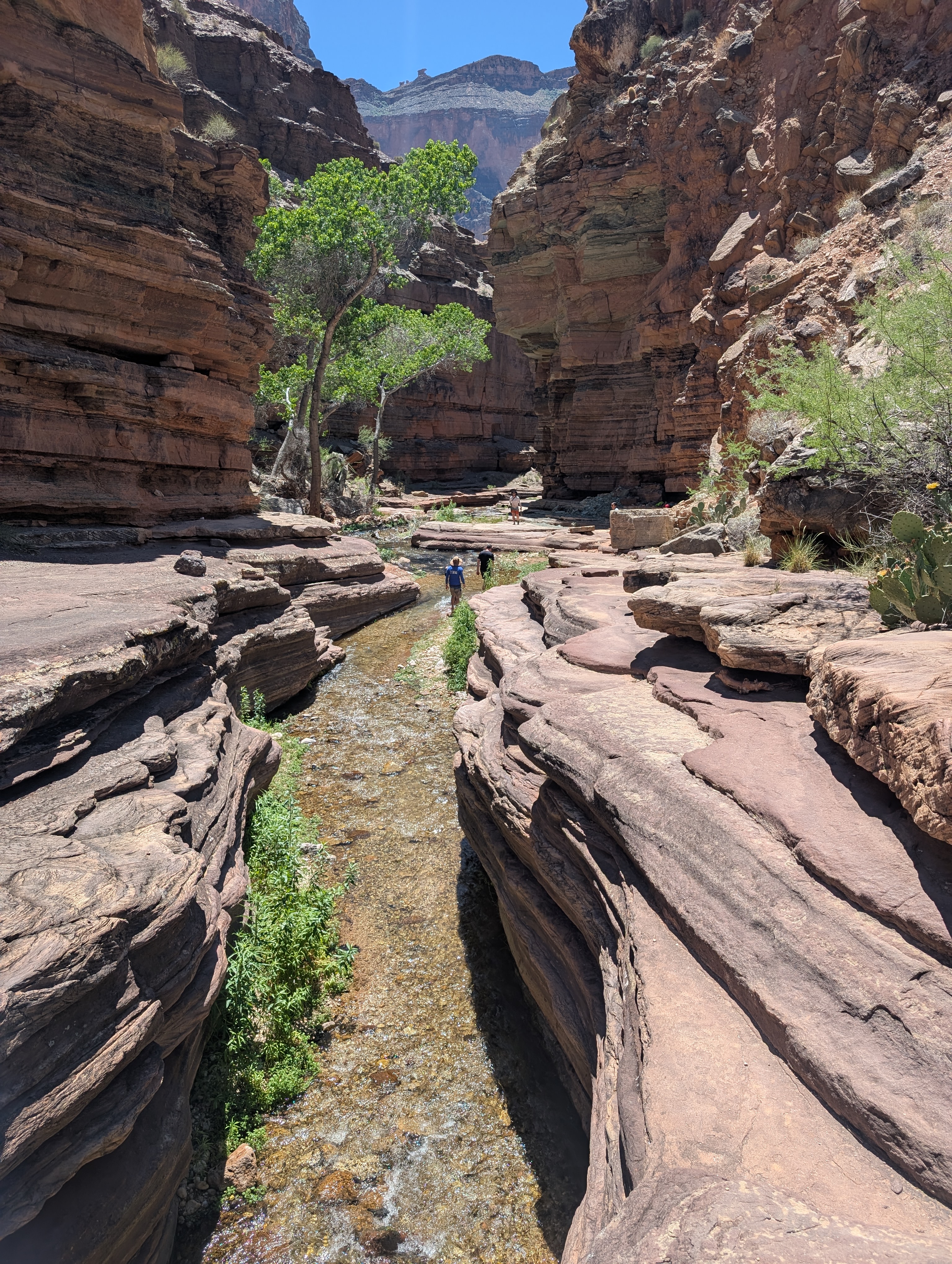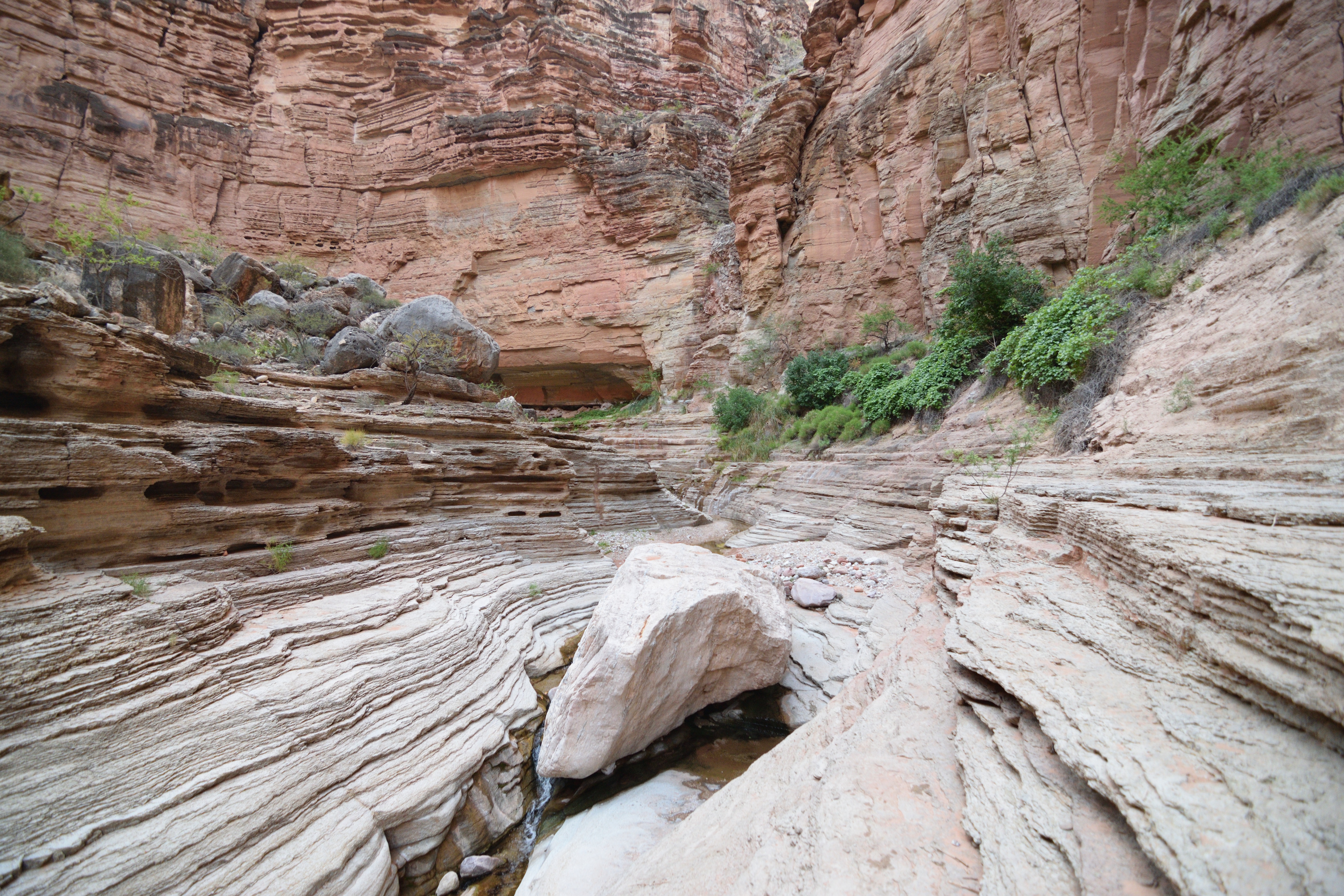 Exploring the side canyons was a highlight of the trip for me; and we tried a couple of pushy adventures with our ropes. I’ve spent time in deserts before but the canyon was something else – timing treks and managing water supplies to be able to get into the side canyons to descend them was a challenge (on one occasion we got caught out and retreated, but even at rest whilst sitting in the shade on the descent my pulse was about 50% higher than normal – my body effectively shutting down in the sun).